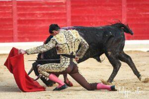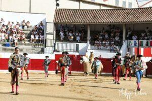 Le public y est d’une turbulence bienveillante. Au soleil, les jeunes du coin, qui se plaisent à faire jouer des airs de bachata sur leurs enceintes tant que les premières notes d’un paso ne viennent égayer les tracés d’une faena. Pour les plus farceurs, quand l’épée ou le descabello s’enraye, c’est un son de mitrailleuse que les decibels crachent. Explicite et plus direct qu’une bronca! Le burladero « joven » porte bien son nom puisqu’on y recense des tout jeunes qui ne dépassent la douzaine d’années.