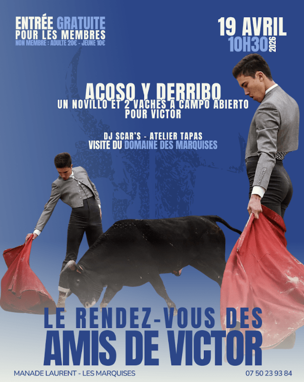 Au fil de la journée, les participants pourront également profiter de la visite du domaine, partager un moment convivial autour d’un atelier tapas, avant de prolonger la rencontre dans une ambiance festive. Une journée pensée pour rassembler aficionados, passionnés et curieux autour du toro et soutenir Victor dans son parcours.