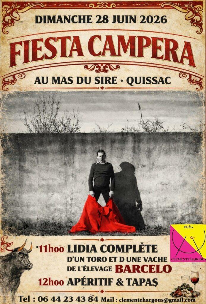 Le dimanche 28 juin 2026, les aficionados ont rendez-vous au Mas du Sire, à Quissac, pour une fiesta campera organisée par la Peña Clemente Hargous.