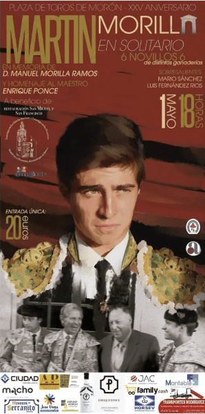 Le novillero Martín Morilla combattra six novillos de différentes ganaderías le 1er mai dans les arènes de Morón de la Frontera . Le festejo se fera sous les caméras de Canal Sur.