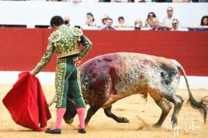 Aire, la corrida en photos. Oreille pour Morenito de Aranda et Jesus Enrique Colombo. Blessure pour Dorian Canton. Du monde sur les gradins.