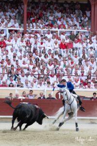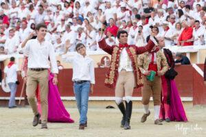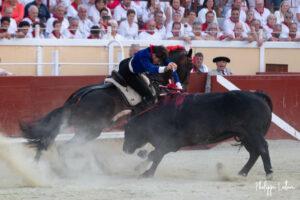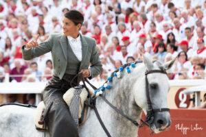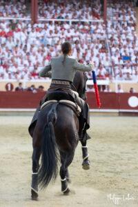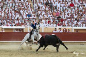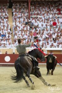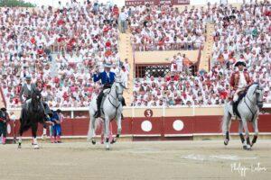 A Bayonne, la corrida de rejon est un incontournable. La présence de Léa Vicens aussi. Encore beaucoup de monde vétu de blanc et rouge au moment où les trois cavaliers rentrent sur la piste de Lachepaillet. Au programme, six toros portuguais de Romao Tenorio pour un cartel international composé de Joao Moura jr (Portugal), Léa Vicens (France) Guillermo Hermoso de Mendoza (Espagne)