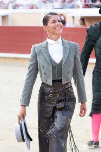 Léa Vicens connut une journée à l’image du temps. Une de celles où pas grand chose ne marche et surtout pas les aciers un vrai talon d’Achille pour l’amazone nimoîse. Son lot de Tenorio nécéssitait d’aller au près des cornes pour l’animer. Léa ne fut pas toujours en mesure de le faire. La fin au rejon de mort, ne fut pas heureuse surtout au dernier où l’exercice s’éternisa.