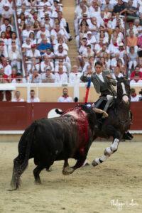 L’univers de Joao Moura est bien plus classique et la connection avec le public est plus dure à opérer.C’est avec le bon 4ème, que le portugais fit montre d’une bonne maîtrise de l’art équestre et de la pose des banderilles. Comme il accompagna le tout de poursuites sans fausse note, il coupa deux pavillons au 4ème gratifié d’une vuelta qui ne s’imposait pas forcément.