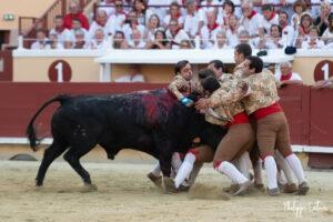 Les forcados de Moita mirent de l’animation avec quatre pegas spectaculaires, les deux premières impeccables et les deux dernières plus chahutées. Ils impressionnèrent par leur courage et sortirent sous une grande ovation.