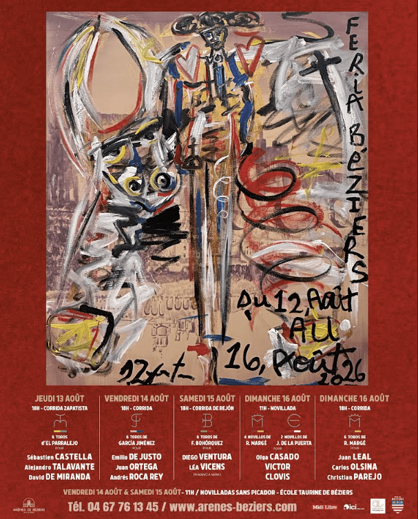 Du 13 au 16 août, les arènes proposeront une programmation qui mèle figuras du toreo, novilleros en devenir et corrida de rejón et l’incursion de toreros français. Sébastien Castella, Juan Leal, Carlos Olsina (et Léa Vicens) sont nos représentants en corrida. Victor et Clovis font la paire en novillada. Côté vedettes, Talavante, Emilio de Justo, Roca Rey, Juan Ortega seront là. David de Miranda représente les toreros émergents, et Christion Parejo se voit offrir ce qui est pour l’instant sa seule opportunité de l’année.