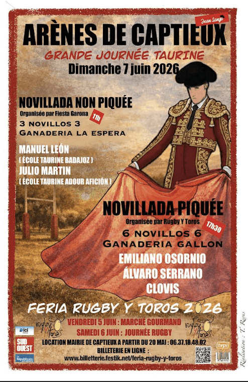 Les équipes de Rugby y Toros et Fiesta Garona dévoilent le programme complet de la grande journée taurine du Dimanche 7 juin 2026 à Captieux.