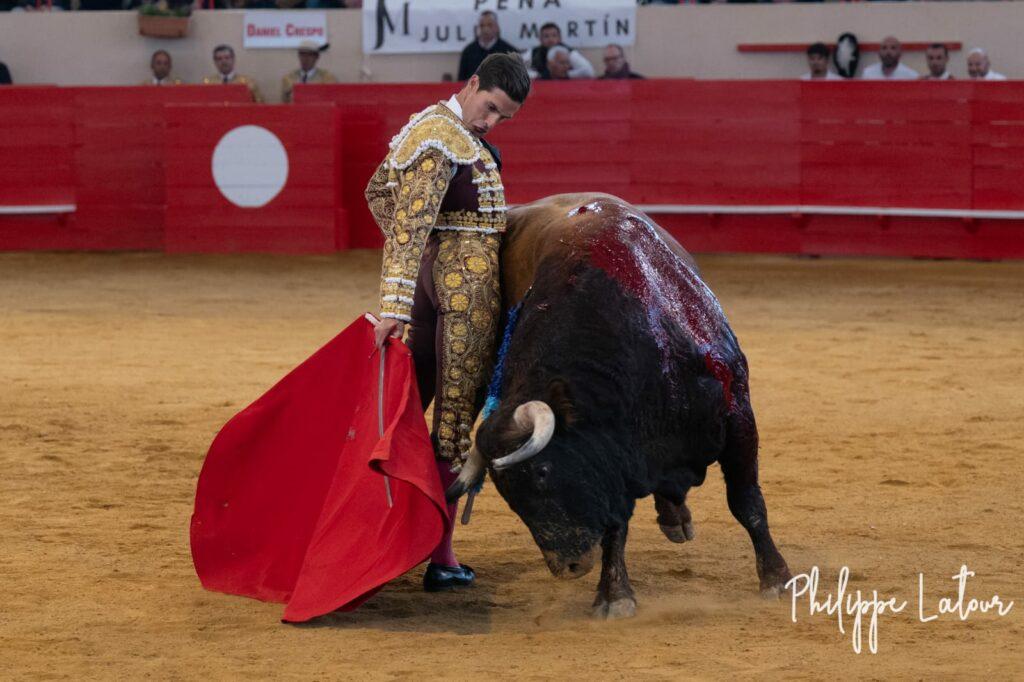 Daniel Crespo n’a pu qu’abrèger la faena à son premier toro qui, parado, est parti aux planches dès le troisième muletazo, silence. Le cinquième manque totalement de moteur. Il faut toutes les qualités de torero, la patience et l’abnégation de Daniel Crespo pour lui arracher trois séries de qualité. L’épée est rapide d’effet et le torero du Puerto de Santa Maria coupe une oreille.
