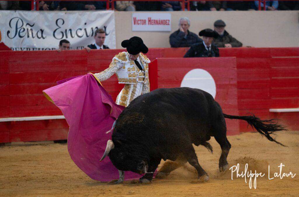 Victor Hernandez reçoit le troisième par une larga de rodillas. Le toro prend un puyazo trop appuyé sans s’employer. Le quite par saltilleras et rebolera de Hernandez est applaudi. Début par statuaires, le toro est brusque. Le Sévillan continue à droite et se fait désarmer. La série suivante est centrée le toro donne des hachazos et touche la muleta malgré le temple du torero. La première série de naturelles est excellente belles mais le toro décomposé part aux planches et comme le précédent y établit son camp de base. Le torero tue d’une entière tombée et efficace. Oreille demandée par le public malgré le coup d’épée.