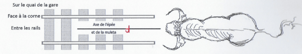 Une fois l’épée en place, il faut regarder sa position. Dans la croix tout est parfait. En arrière on peut évoquer la maladresse. Tombée, basse, dans le cou et en avant, la probabilité que l’estocade soit tout sauf sincère est quasi de 100%. On peut excuser une estocade « habile » quand les circonstances l’obligent. On ne peut pas accepter une estocade « non sincère ».