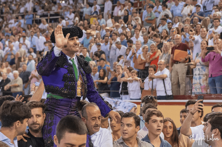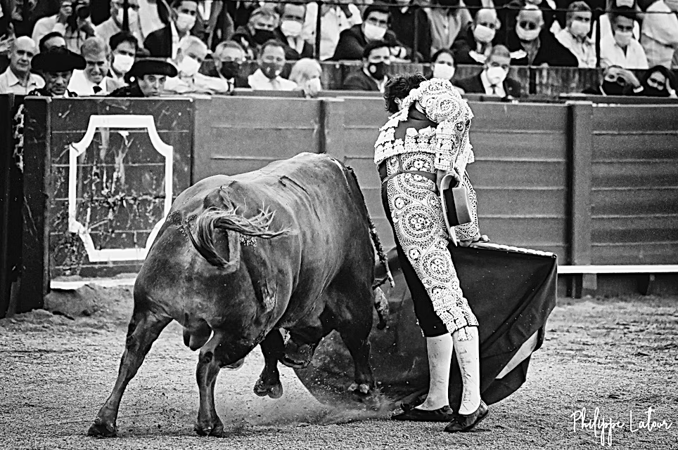 Morante tente absolument après avoir ravalé une crise de larmes de se remettre en condition, étonnant. Il revient finalement en piste pour servir une faena ciselée, et parsemée de passes d’une proximité et d’une entrega totale. L’estoconazo fait basculer l’arène qui demande et obtient les deux pavillons ravissant beaucoup, faisant grincer quelques dents pour certains sceptiques. Peu importe, là n’est pas le plus important, car après avoir effectué son tour d’honneur, le torero de La Puebla s’en va pleine piste, en pleurs et dans la stupeur générale et une ovation grandissime, se couper lui-même la coleta. Morante s’en va, sans possibilité de retour, l’histoire taurine de ce torero que certains considèrent comme un (sinon le) des plus grands de l’histoire se finit un jour du dia de hispanidad 2025.