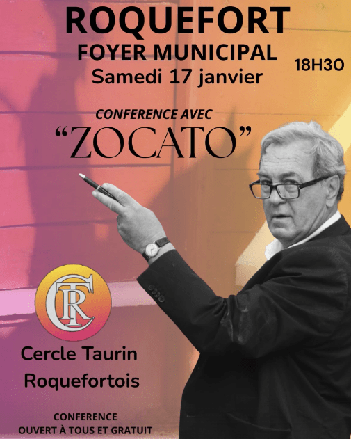 Le 17 janvier prochain , Zocato sera en conférence au foyer municipal de Roquefort à 18h30. Entrée libre et gratuite.