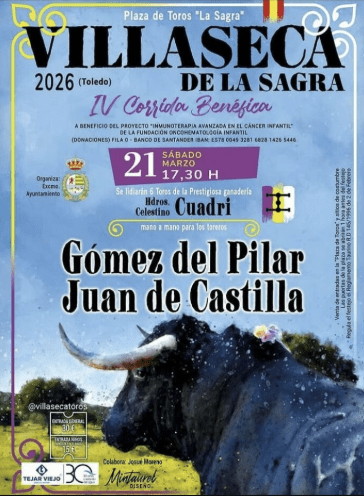 La 4ème corrida bénéfique (au profit de la lutte contre les cancers infantiles) organisée en début de temporada à Villaseca de la Sagra aura lieu le 21 mars prochain. Elle mettra Gomez del Pilar et Juan de Castilla aux prises avec des toros de Cuadri.