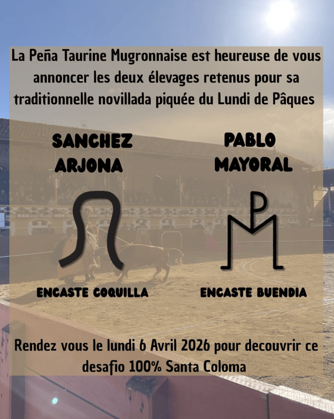 La commission taurine de Mugron a arrêté son choix sur les élevages Coquilla de Sánchez Arjona et Pablo Mayoral pour la novillada piquée pour un duel 100% Santa Coloma (Coquilla vs Buendia). Les cartels officiels de la journée seront communiqués à une date ultérieure. Rendez-vous lundi 6 Avril à Mugron.