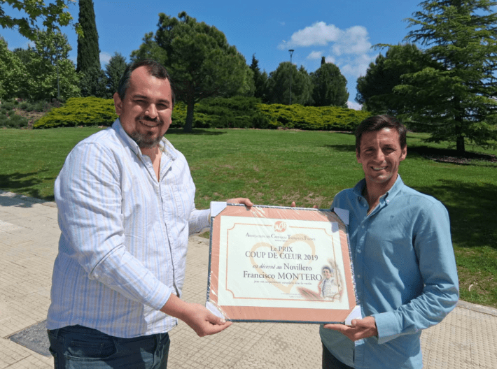 Profitant de son actuacion à San Agustin de Guadalix, Yannick Florenza représentant de feu l’association des critiques taurins du sud-est a remis le prix coup de coeur 2019 revenant à Francisco Montero à l’époque novillero. Le torero andalou l’a reçu de bon coeur. Tout a vient à point qui sait attendre.