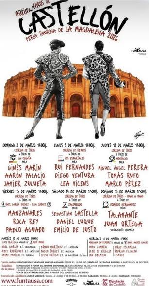 Première feria a annoncé ses cartels , Castellon propose un programme avec un goût de déjà beaucoup vu…excepté le cartel initial. L’arlésien Lisares sera présent à la NSP du 11 mars.