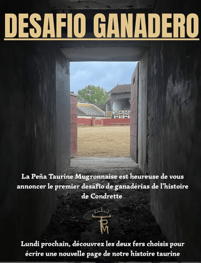Lundi 6 Avril 2026 dans la Plaza de Condrette aura lieu la traditionnelle journée taurine de Mugron. La NSP matinale sera suivie de la novillada piquée dans l’après-midi. Pour la première fois de son histoire, Mugron accueillera un dsafio ganadero. L’annonce des ganaderias sélectionnées sera faite lundi prochain!