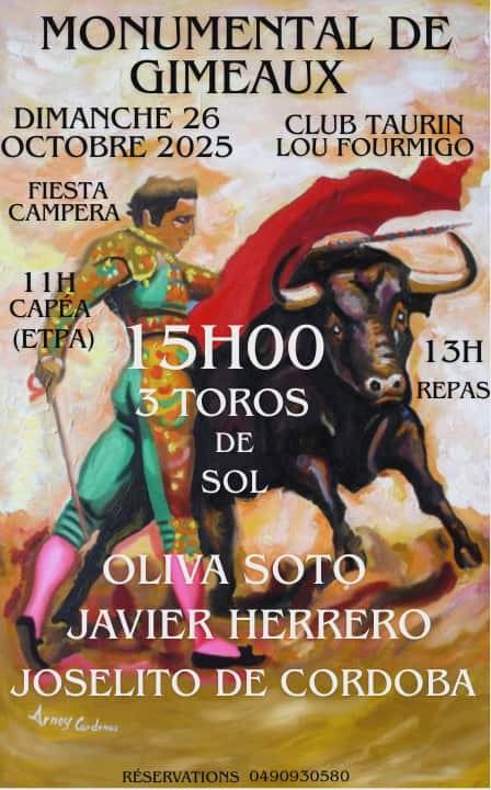 A cause des mesures sanitaire (DNC) qui interdit le transport de bovins et les spectacles taurins jusqu’au 4 novembre, le Club Taurin Lou Fourmigo se voit contraint d’annuler sa fiesta campera du 26 octobre prochain. Joselito de Cordoba prévu au cartel ne regrettera pas son forfait étant obligé de couper sa temporada se ressentant d’une récente blessure.