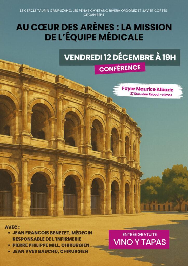 Vendredi 12 décembre à 19 heures au foyer Albaric à Nîmes, le cercle taurin Tomas Campuzano, les peénas Cayetano et Javier Cortes organisent une conférence