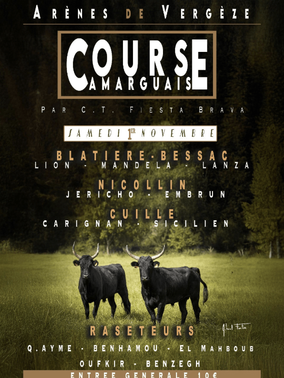Le Samedi 1er Novembre un concours de 3 manades niveau avenir mettara aux prises parmi les meilleurs raseteurs des trophées Avenirs As , avec les taureaux des manades Blatiere Bessac, Cuille et Nicollin dans les arènes de Vergèze.