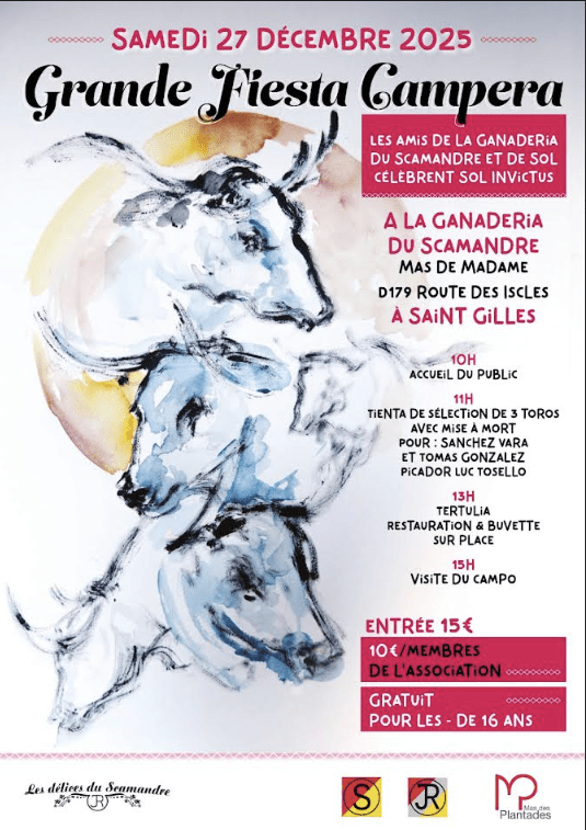 Samedi 27 décembre, les Amis de la Ganaderia du Scamandre et de Sol célèbrent Sol Invictus. La fiesta campera se déroulera à la ganaderia du Scamandre Mas de Madame Routes des iscles à Saint Gilles.