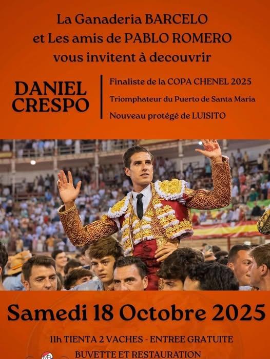 - par contre MAINTIEN de la journée à la ganaderia Barcelo organisé par les Amis de Pablo Romero ce samedi 18 octobre. Les vaches passent du camp à la placita sur place, la tienta est donc maintenue.
