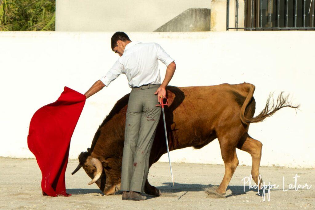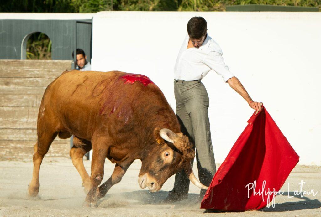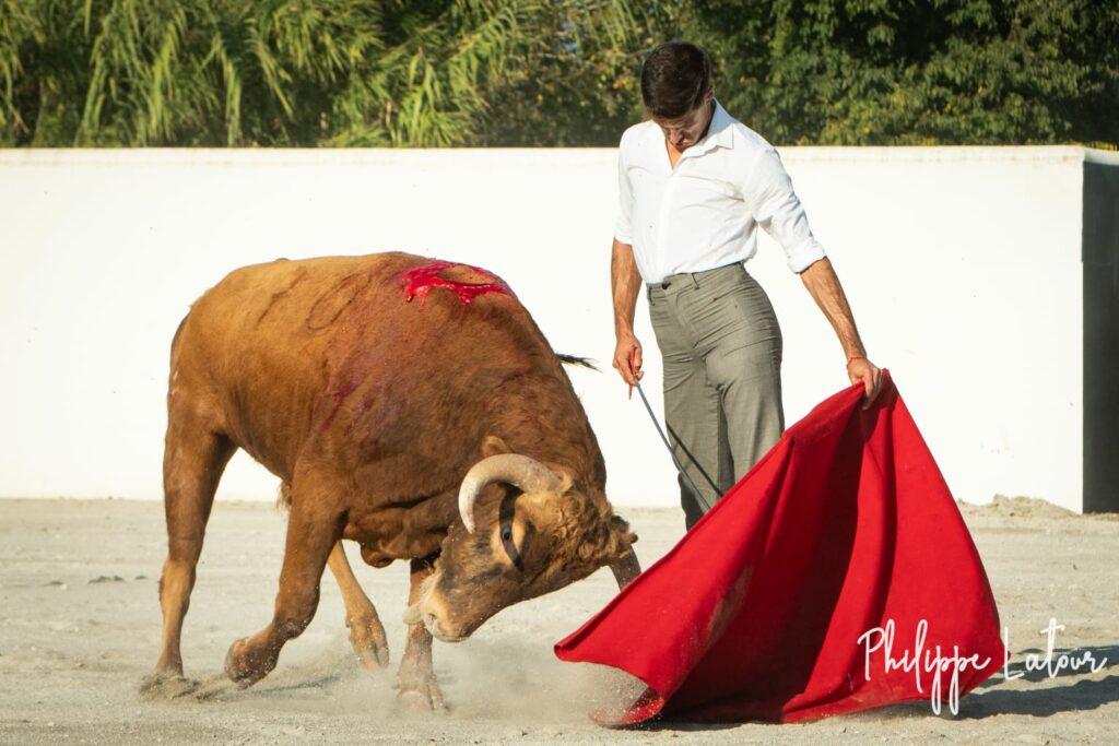 La nouvelle du report du festival de Méjanes venait juste de tomber. 1500 kilomètres au compteur depuis le Puerto de Santa Maria, et une perspective de retour, sans possibilité de se montrer au public français, Daniel Crespo pouvait l’avoir mauvaise.. Il garda néanmoins son sourire au sein de la ganaderia Malaga de Pierre Henry Callet. Le portuense eut en effet la possibilité de toréer (sans mise à mort) un des pupilles du domaine. Il confirma que Luisito a vu juste et que l’andalou est un torero à suivre.
