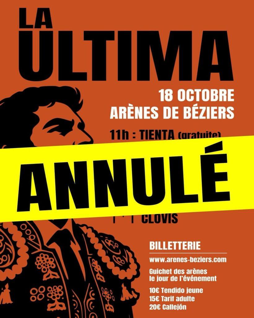 - annulation de la Ultima à Béziers de ce samedi 18 octobre