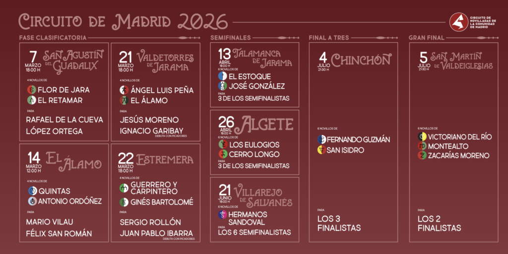 Le Circuit de Novilladas de Madrid 2026 est désormais bouclé. Avec neuf festejos entre mars et juillet.