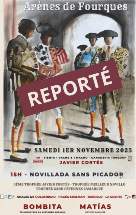 Suite à l’arrêté préfectoral interdisant le transport des bovins, la novillada prévue le 1er novembre à Fourques est reportée au Samedi 28 février 2026.