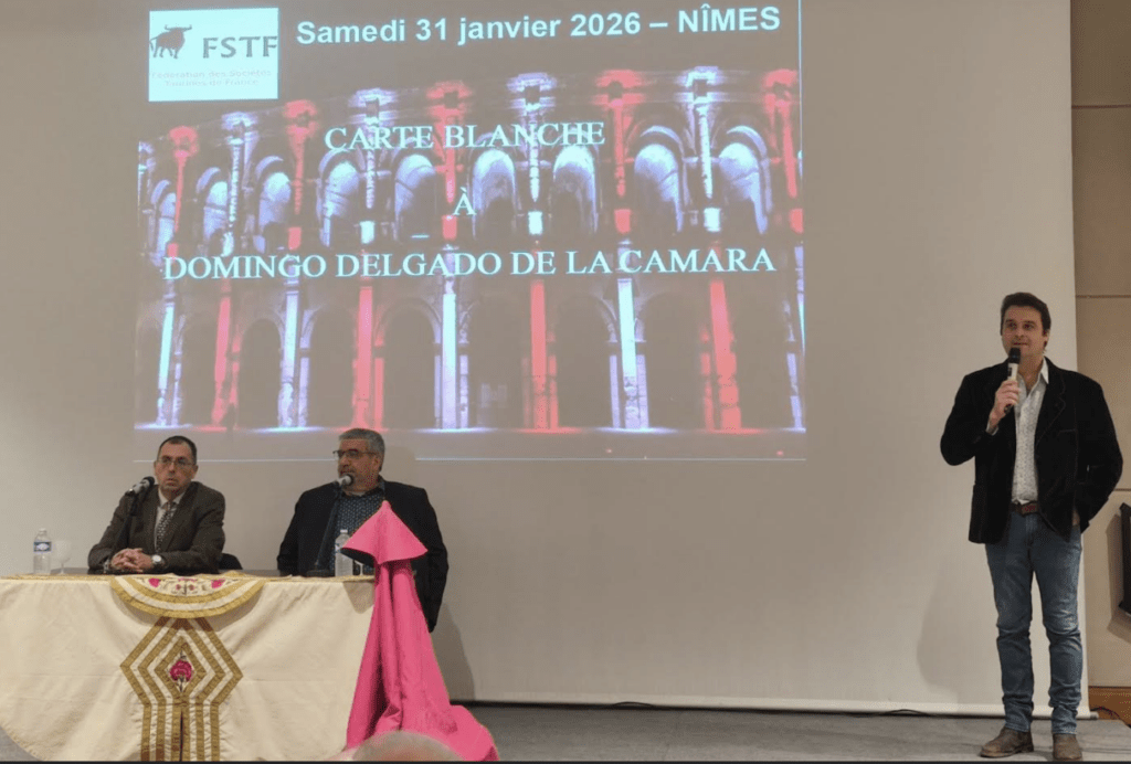 A l’initiative et sur invitation de la Fédération des Sociétés Taurines de France, samedi 31 janvier 2026, l’auditorium du Carré d’art Jean Bousquet de Nîmes a vibré au son des paroles sincères, justes et passionnées de Domingo Delgado de la Camara, journaliste, écrivain et grand érudit de la Tauromachie.