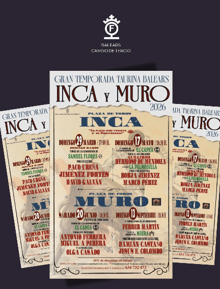 L’empresa Baleares Cambio de Tercio a dévoilé les cartels d’une ambitieuse saison taurine dans les arènes d’Inca et de Muro et poursuit sa politique de revitalisatiion d ela tauromachie dans l’île des Baléares