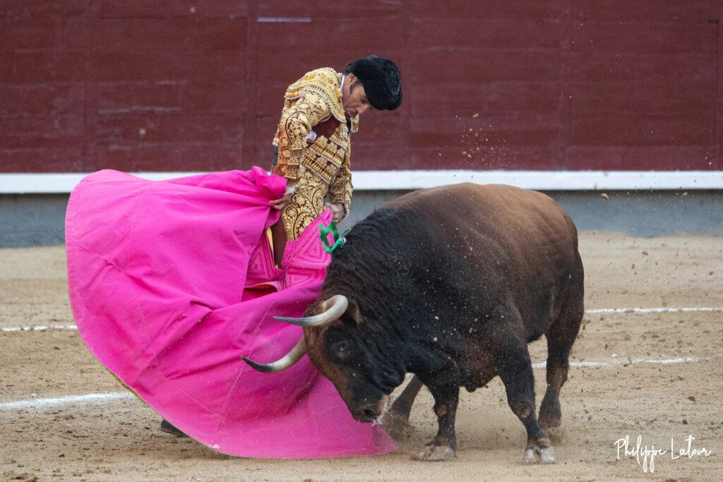 Grand et lourd, le 1er Puerto est reçu avec style par Uceda Leal. Il fait son devoir sans plus en deux piques avant de s’engouffrer dans un quite soyeux de Fortes en véroniques et demie extra. Début superbe par doblones élégants et dominateurs. Le Puerto a une belle embestida sur la corne droite. Uceda en profite à foison avec plusieurs séries de derechazos liés et rématés par des longs pechos ou trincherazos de la maison. La corne gauche ne plaît pas au madrilène et l’essai sur ce côté sera rapide et vite escamoté…dommage. Epée fulminante mais après un 1er essai et un descabello. Salut chaleureux et ovation au toro.