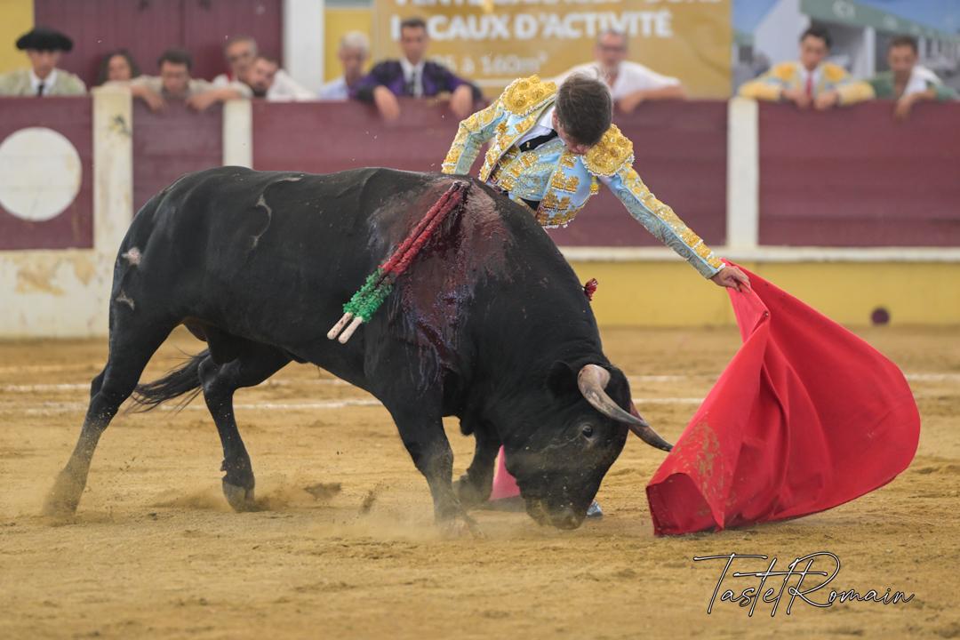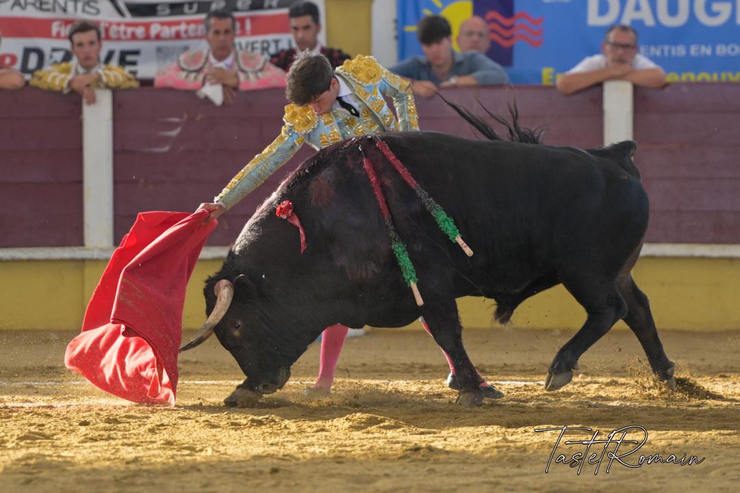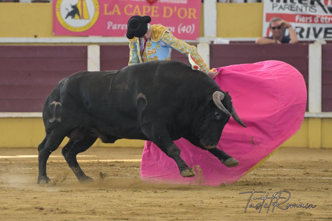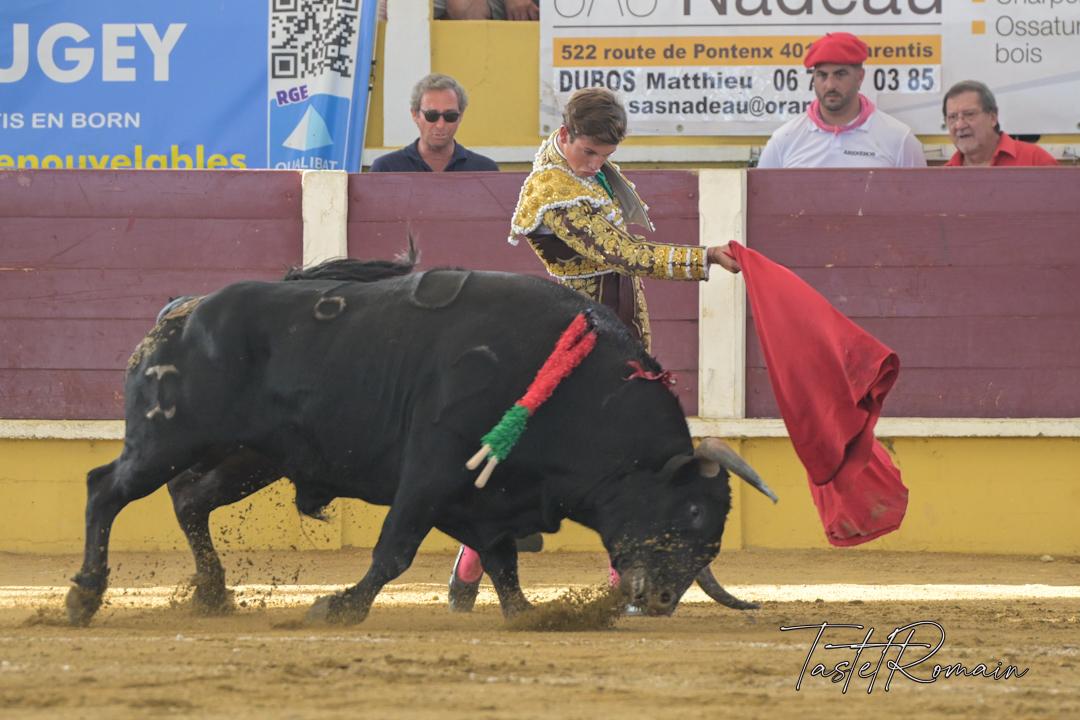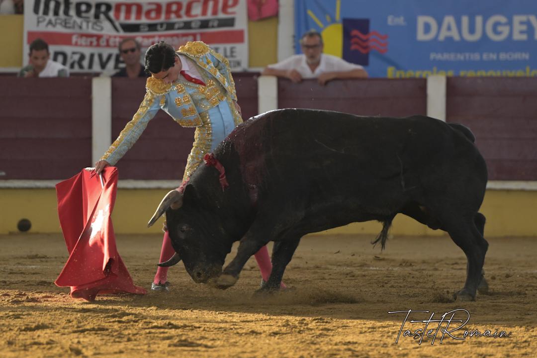 Le lot envoyé à Parentis par la ganaderia José Cruz est un lot de novillos modernes. Correctement présentés, ils se sont employés au cheval mais ne supportaient pas une seconde rencontre. A la muleta, ils passent sans mauvaise manière en début de faena. Ensuite justes de force, ils baissent de régimé voire s’éteignent et permettent quelques fioritures pour parachever la connexion avec le public. Ils n’ont transmis ni l’émotion du danger ( à la manière de Dolores Aguirre) ni celle de la classe (à la manière de La Quinta) car il n’avaient ni danger ni classe. Comme ils meurent rapidement, tout est réuni pour qu’un public comme celui qui garnissait les gradins des arènes parentissoises soit content et demande des oreilles.