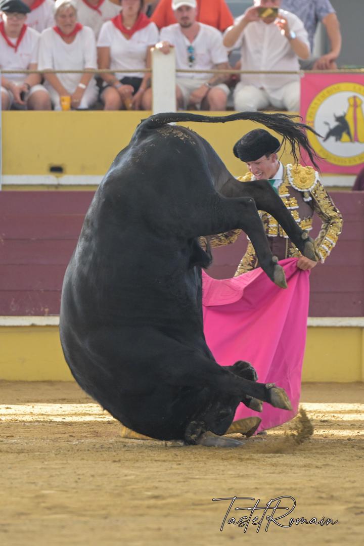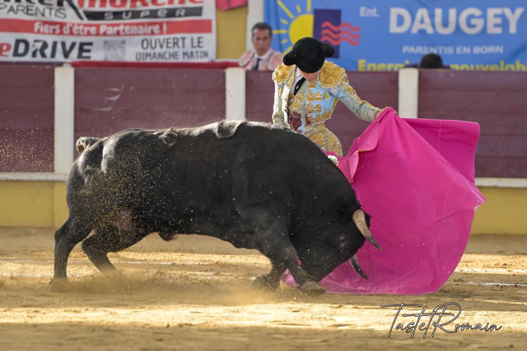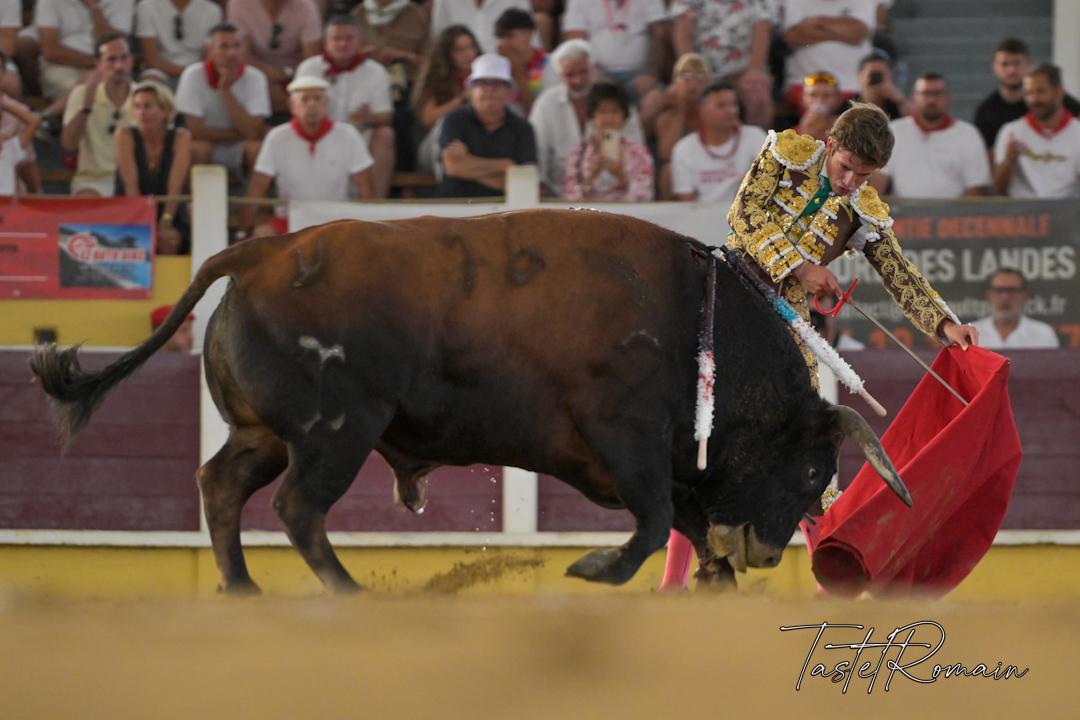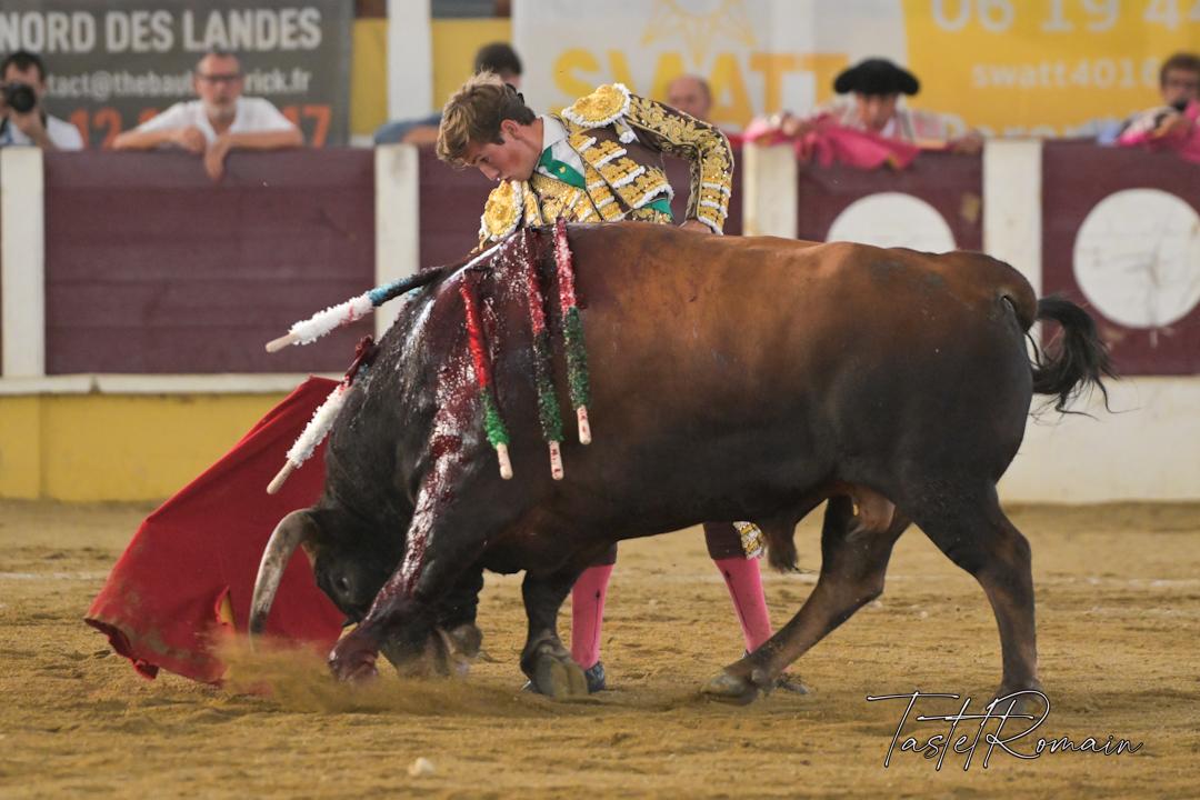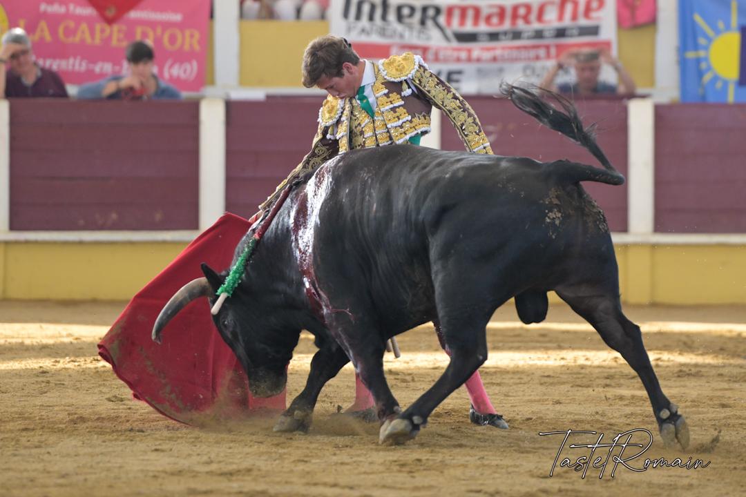 Le lot envoyé à Parentis par la ganaderia José Cruz est un lot de novillos modernes. Correctement présentés, ils se sont employés au cheval mais ne supportaient pas une seconde rencontre. A la muleta, ils passent sans mauvaise manière en début de faena. Ensuite justes de force, ils baissent de régimé voire s’éteignent et permettent quelques fioritures pour parachever la connexion avec le public. Ils n’ont transmis ni l’émotion du danger ( à la manière de Dolores Aguirre) ni celle de la classe (à la manière de La Quinta) car il n’avaient ni danger ni classe. Comme ils meurent rapidement, tout est réuni pour qu’un public comme celui qui garnissait les gradins des arènes parentissoises soit content et demande des oreilles.