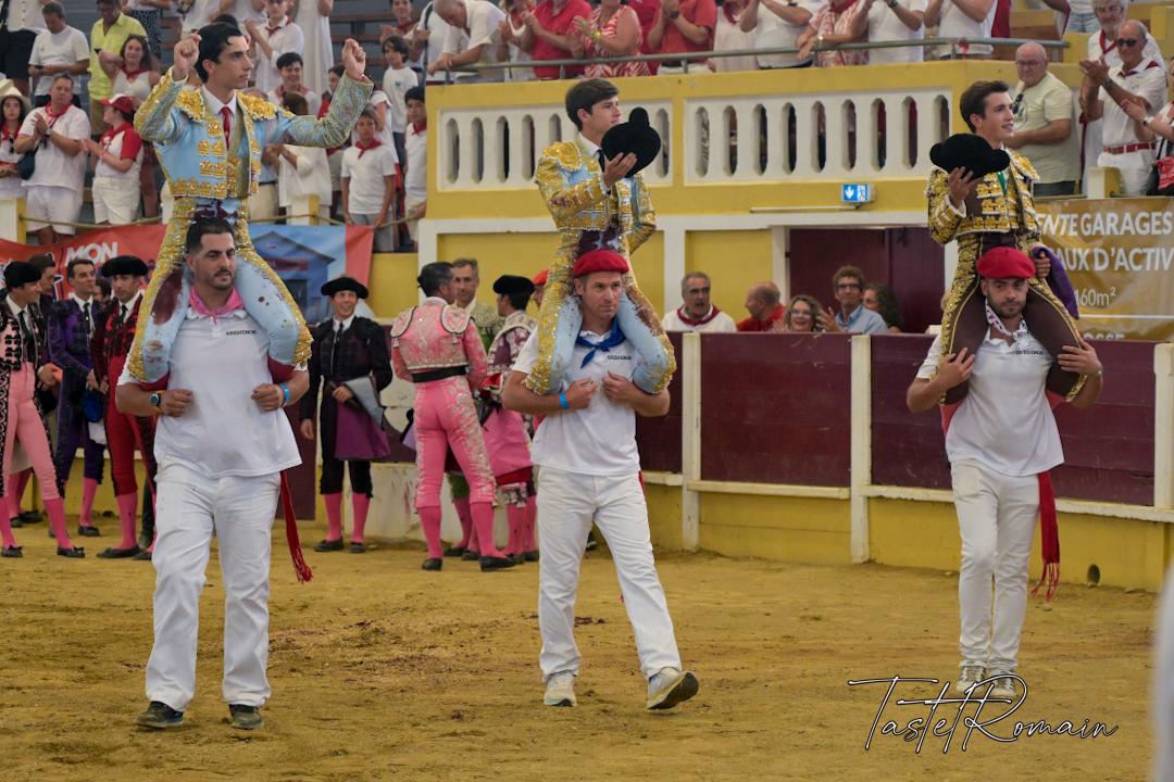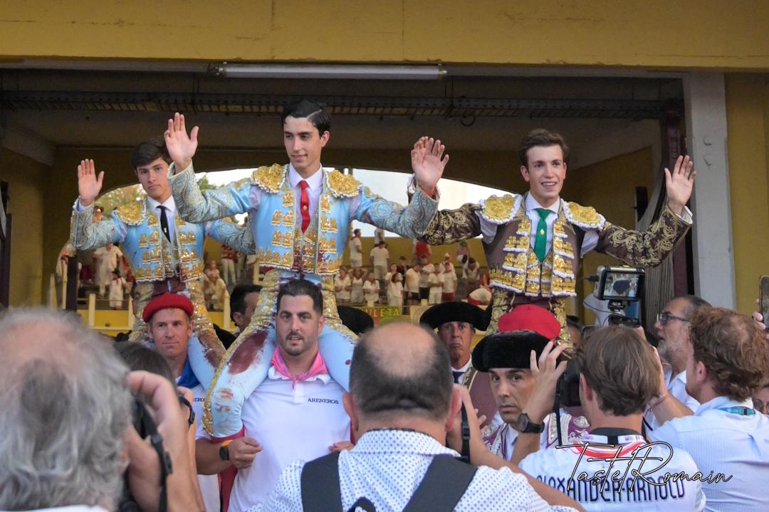 Il est forcément mal venu d’être à contrecourant après un tel triomphe au risque de passer pour un rabat-joie. Mais nous sommes certains à ne pas avoir ressenti d’émotion qu’elle soit toriste ou toreriste lors de ce festejo. Ce n’est pas la faute des trois novilleros, expérimentés et d’un bon niveau, qui ont fait ce qu’il fallait pour triompher sans basculer dans la vulgarité. Ce n’est pas de la responsabilité du palco qui, à l’exception de la première oreille, a dû géré des pétitions bruyantes. Le trio présidentiel a même su résister à la pétition de vuelta pour le cinquième. Ce n’est pas la faute des organisateurs qui ont presque rempli les gradins et proposé des toros correctement présentés.