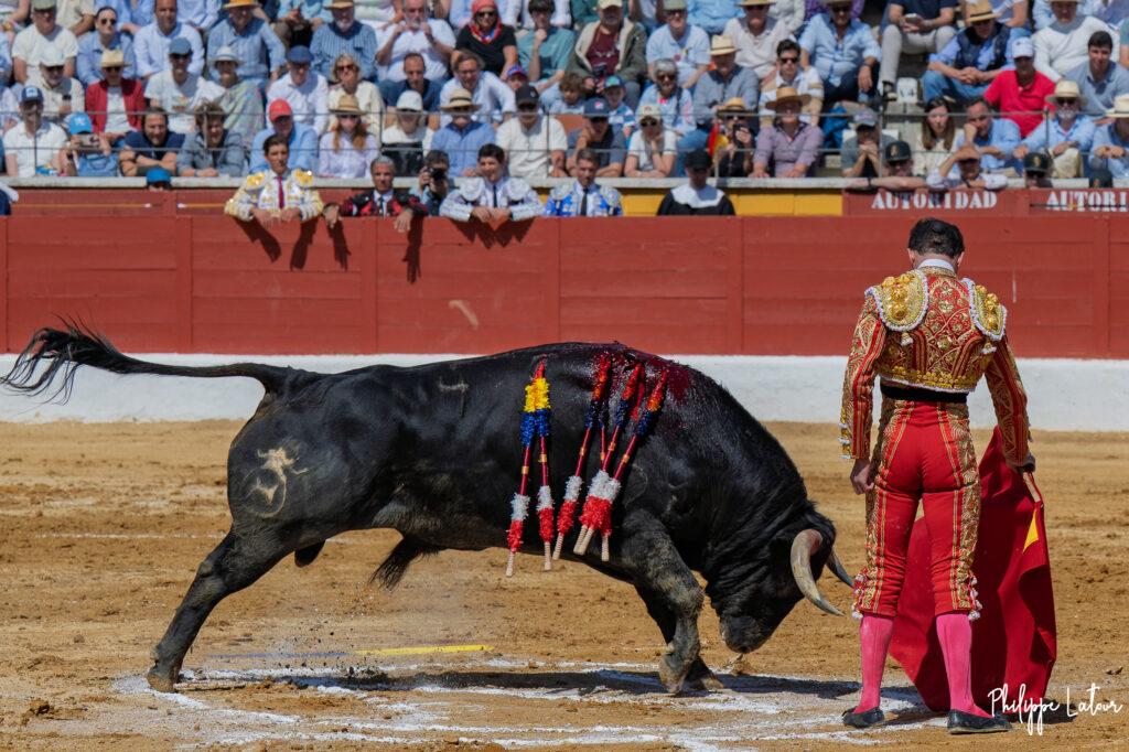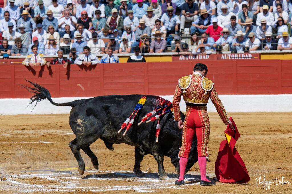 Le premier Dolores est bien présenté et très noble il a une excellente corne droite. Ovation. Le second est bravito au cheval. A la muleta, il passe mieux à gauche mais ne tient pas la distance. L’ultime est brave et imposant ce qui lui vaut d’être assassiné au premier tiers. A la muleta il est noble. Que pena, ovation à l’arrastre.