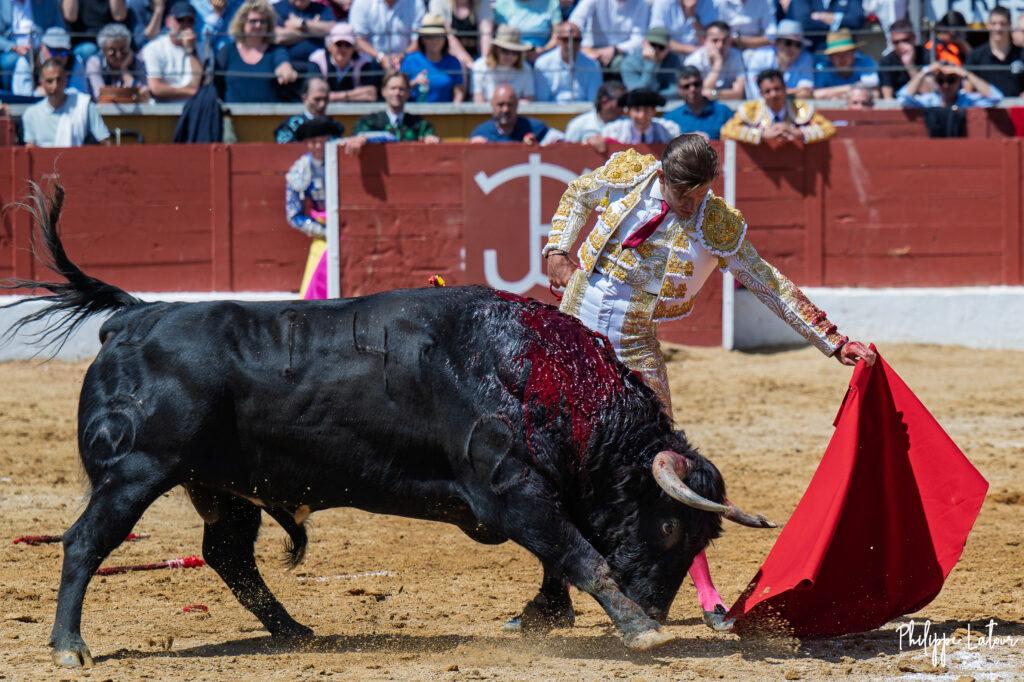Maxime Solera donne quelques bons muletazos à gauche à un toro noblote qui va à menos. C’est compliqué à l’épée et au descabello. Silence. Maxime Solera fait effort au dernier. Le toro est vite éteint et la faena ne transmet pas malgré la bonne volonté du Français. Nouvel échec à l’épée. Silence.