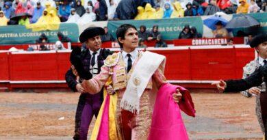 La pluie continue mais avec plus de retenue puis s’arrête. Le troisième, faible, est peu piqué. Sur les deux côtés, il fléchit, charge en marchant et s’arrête à mi passe. Gines Marin s’applique mais la faena manque de transmission et d’intérêt. Silence après pinchazos et une entière habile et basse, sifflets à l’arrastre.